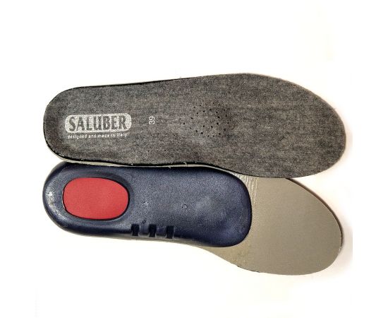 Утепленные стельки Saluber Thermo с верхнем шерстяным покрытием гарантируют тепловой комфорт и мягкость. “Коконирующая пятка” с амортизирующей подушкой Pron с эффектом памяти способствуют правильной осанке, смягчают удар пятки о землю и поглощают вибрации, чтобы свести к минимуму нагрузку на суставы и позвоночник. Полноразмерная мембрана Poron memory равномерно распределяет вес тела по всем участкам стопы и поглощает удары, чтобы свести к минимуму усталость.