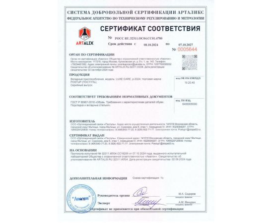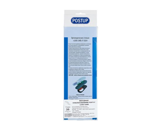 Стельки Postup LUXE CARE - забота о Ваших ногах премиум класса. При любых проблемах с опорно-двигательным аппаратом стельки Postup Luxe Care принесут пользу организму. Особенно ценный эффект — это снятие боли при воспалении подошвенной фасции (при пяточной шпоре). Стельки “Luxe Care“ разработаны подиатрами и ортопедами для лечения пациентов с заболеваниями и травмами опорно-двигательного аппарата. Вкладные приспособления в обувь предназначены для коррекции комбинированного плоскостопия, снятия воспаления в пяточной области и купирования боли при «пяточной шпоре» (подошвенном фасциите). Стельки рекомендованы пациентам с артрозом голеностопного, коленного и тазобедренного суставов, для реабилитации после травм и операций, для занятий фитнесом и спортом.
