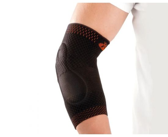 Бандаж изготовлен из дышащего эластичного материала. Бандаж содержит две анатомические подушечки из вязкоупругого материала, которые равномерно распределяют компрессию на надмыщелок и внутренний надмыщелок плечевой кости.Трикотажная ткань с трехмерным плетением, эластичная и воздухопроницаемая. Обладает влагоотводящим свойством. Анатомическая вязка по 3d модели. Силиконовый пелот равномерно распределяет компрессию на надмыщелок и внутренний надмыщелок плечевой кости.