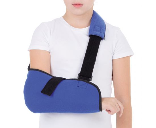 Детский бандаж на плечевой сустав (косынка) изготовлен из мягкого прочного воздухопроницаемого материала, который комфортен при длительном применении. Имеет ремешок для фиксации верхней конечности к туловищу. Универсальный, подходит для левой и правой руки