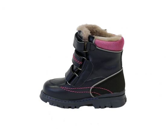 Натуральная кожа, натуральный мех, высокая и жесткая пяточная часть, жесткие берцы, возможно вложить ортопедическую стельку.