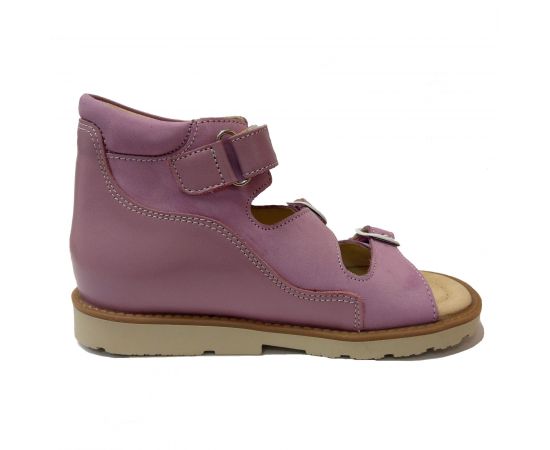 Обувь предназначена для коррекции плоско-вальгусных стоп. Мыс открытый. Бесшовная подкладка из яловой кожи дарит комфорт и исключает возникновение потертостей, позволяет стопе дышать.