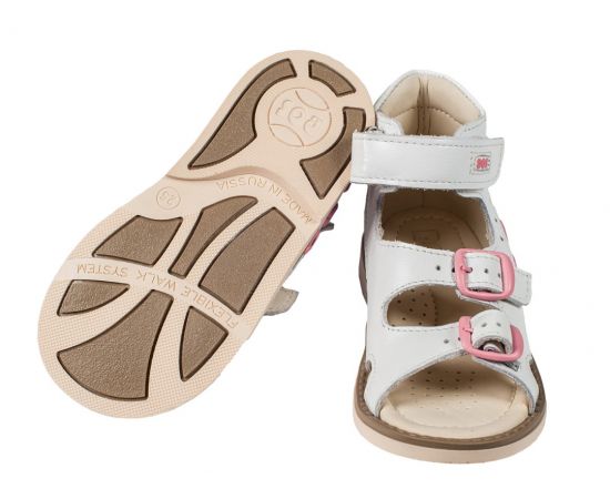 Ортопедические сандалии для профилактики и коррекции плоскостопия и плоско-вальгусной установки стоп. Широкий, устойчивый каблук специальной конфигурации - каблук Томаса. Каблук продлен с внутренней стороны до середины стопы, чтобы исключить заваливание стопы вовнутрь, так называемая косолапость, или вальгусная деформация. Анатомическая стелька с супинатором для правильного формирования свода стопы. Задник максимальной жесткости с удлиненным крылом надежно стабилизирует голеностопный сустав во время ходьбы. Упругая, умеренно-эластичная подошва, имеющая перекат, позволяет повторить естественное движение стопы при ходьбе для правильного распределения нагрузки на опорно-двигательный аппарат ребенка.
