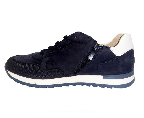 Кроссовки Woopy для девочки-подростка насыщенного синего цвета с декоративной серебристой полосой. Ботинки стильные, добротные. Резиновая подошва долговечна, но она добавляет вес обуви, из-за чего они кажутся тяжеловатыми.