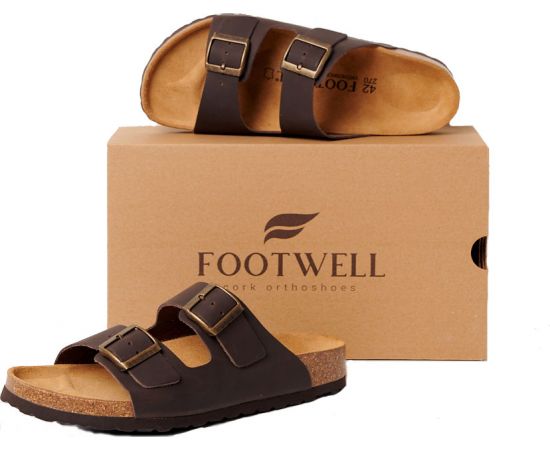 Мужские пантолеты Footwell. В основе пробко-латексный стелечный узел увеличенной полноты. Анатомическая выкладка для поддержки продольного и поперечного сводов, валик под пальцы. Бортики и углубление под пятку для стабилизации стопы. Идеальная амортизация и распределение нагрузки на стопу. Могут быть использованы для профилактики и коррекции плоскостопия.