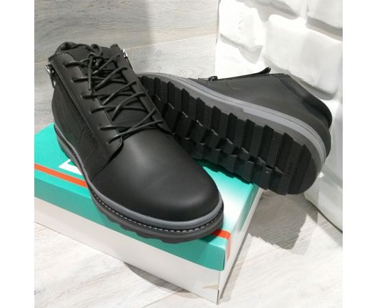 Зимние мужские ботинки на натуральном меху. Материал - натуральная кожа. Комфортная ортопедическая обувь на зиму. Фиксация на ноге с помощью шнуровки и две застежки молнии облегчают надевание. Подходит на широкую стопу.