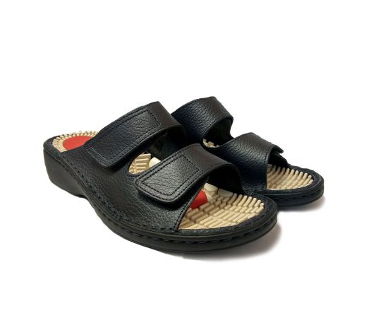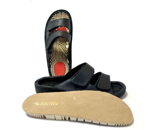 Массажные обувь из Италии бренда Stiledivita, которую можно носить целый день. Если вы устали от массажной стельки, то ее можно перевернуть и пользоваться классической кожаной. Также в шлепанцы можно вставить индивидуальные стельки.