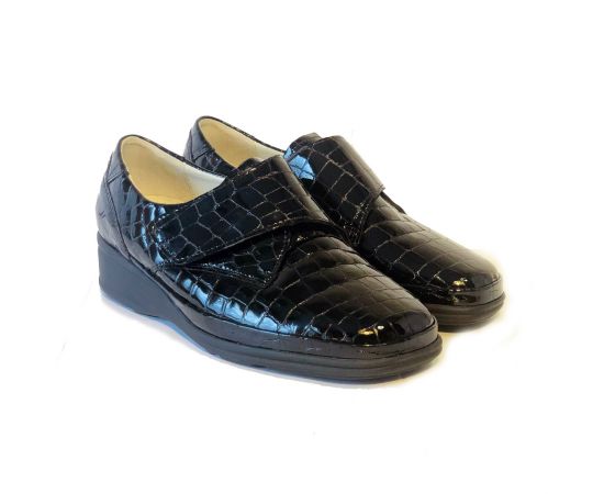 Кожаные женские полуботинки Waldlaufer со съемной стелькой на сплошной подошве. Декор выполнен под крокодиловую кожу. На ноге смотрятся стильно и аккуратно.