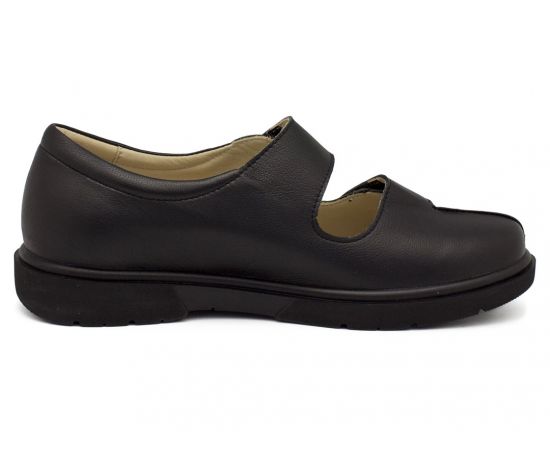 Женские ортопедические туфли Dr.Spektor DSF-11008-K, выполненные из натуральной мягкой кожи, имеют увеличенную полноту. Широкий закруглённый закрытый мыс обеспечит удобство и защиту пальцев стоп, а ремешок на липучке позволит плотно зафиксировать обувь на ноге и отрегулировать полноту.