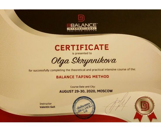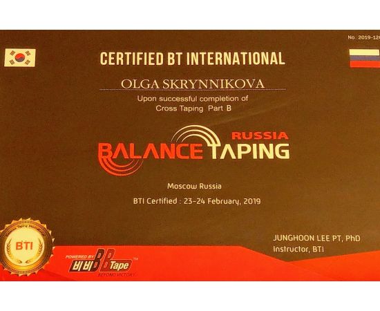 Процедуру тейпирования в салоне проводит сертифицированный специалист Скрынникова Ольга Владимировна.
